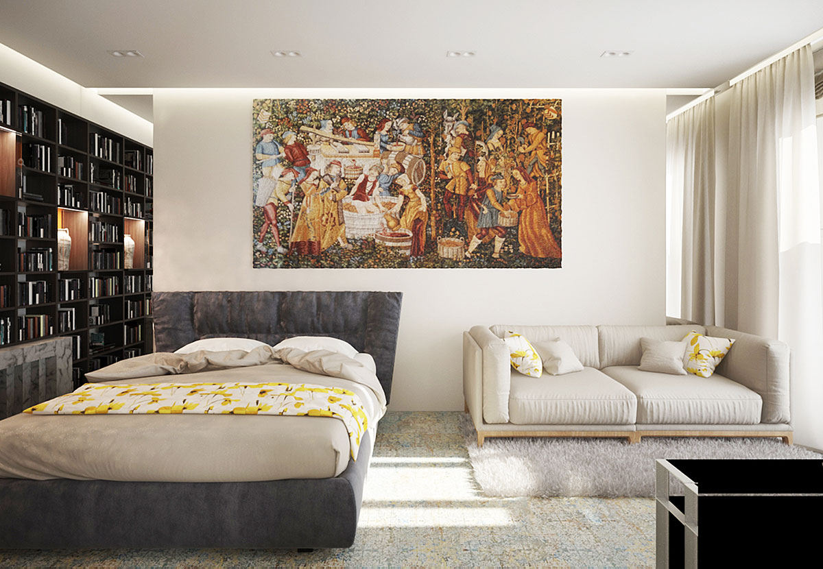 Была предложена идея выложить всё пространство керамогранитом, имитирующим ковровое покрытие. Для этого хорошо подошёл испанский керамогранит Aparici carpet vestige natural.