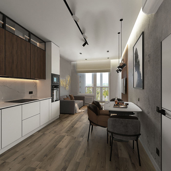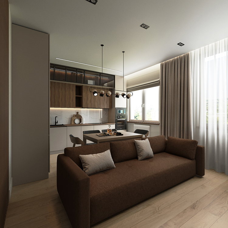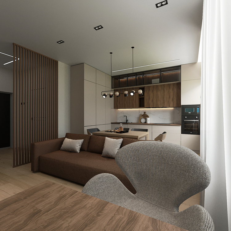 Сегодня лофтовые перегородки перешли от общественных мест к частным: они разделяют зоны в квартирах и домах. Этот проект делался в панельном доме серии П44Т.