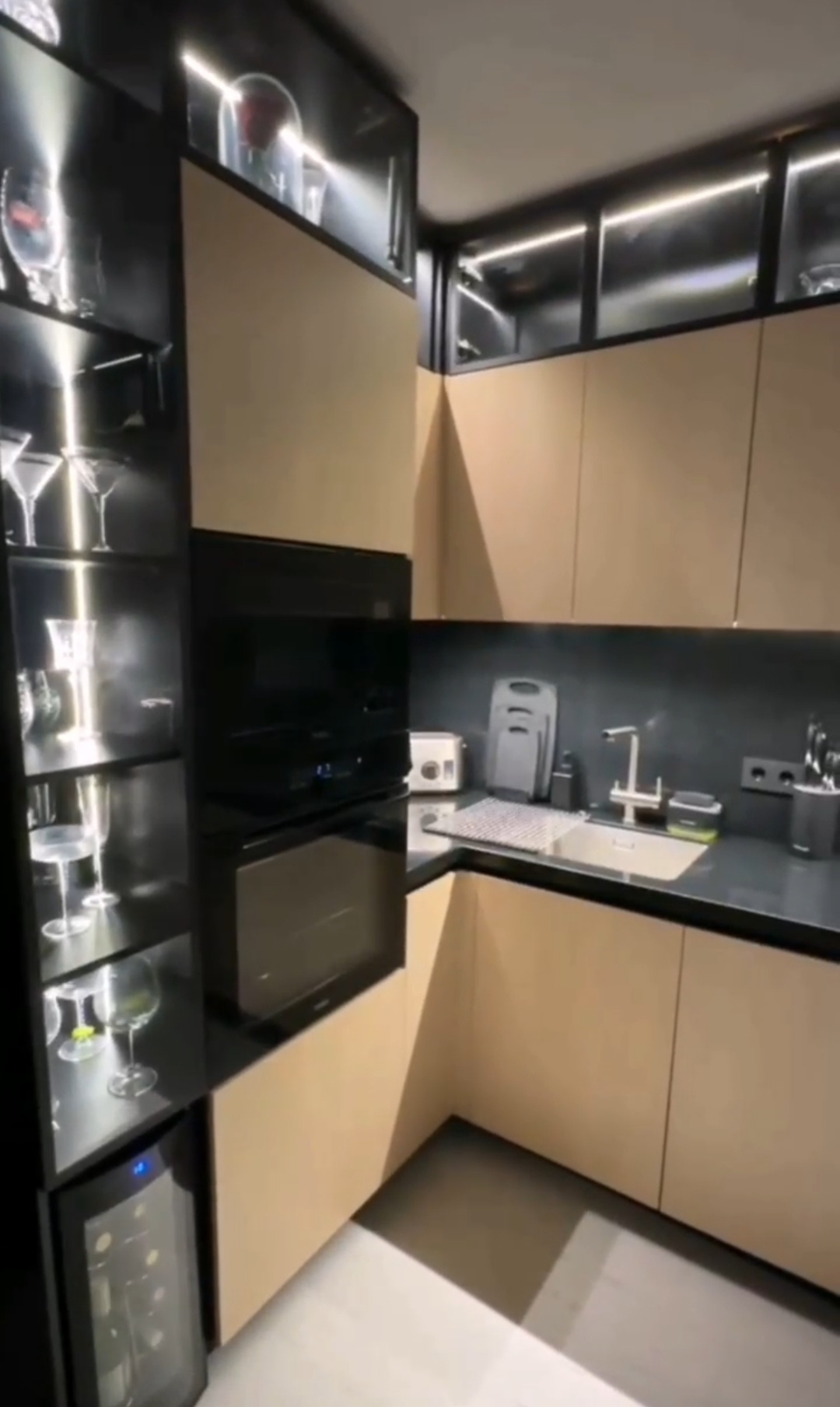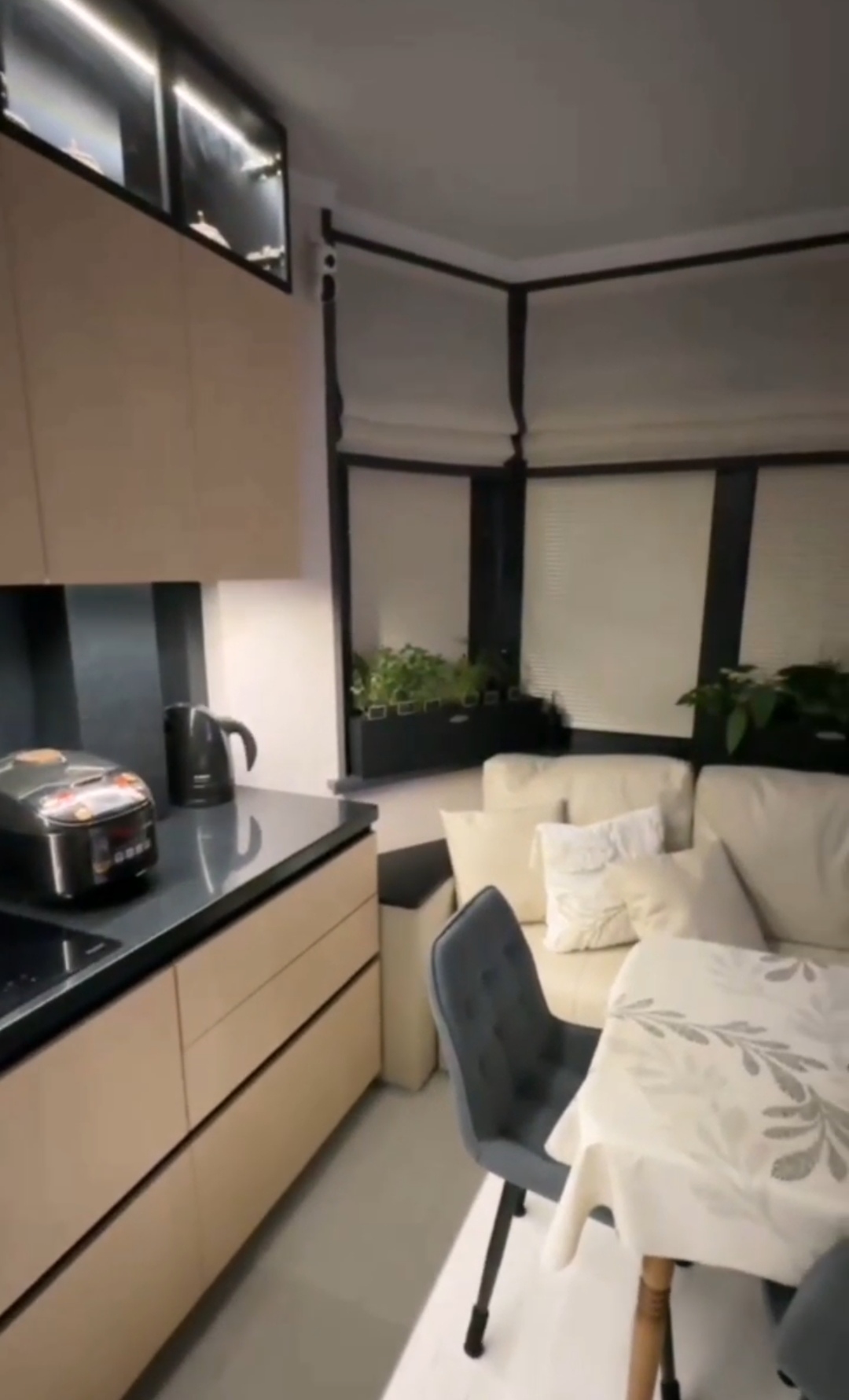 Интересный, но не частый способ разделения пространства-подиум. Минусы: теряется высота... и как работать роботу-пылесосу? Высоту можно компенсировать за счёт встроенного линейного освещения, а вот проблему спотыкания не убрать.